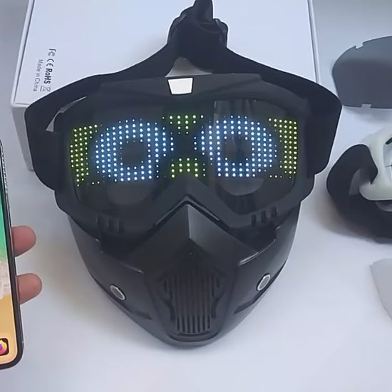 Connect your mask to your phone via Bluetooth using the Shining Glasses APP (Link provided) and easily customise text, animations, and pictures.
