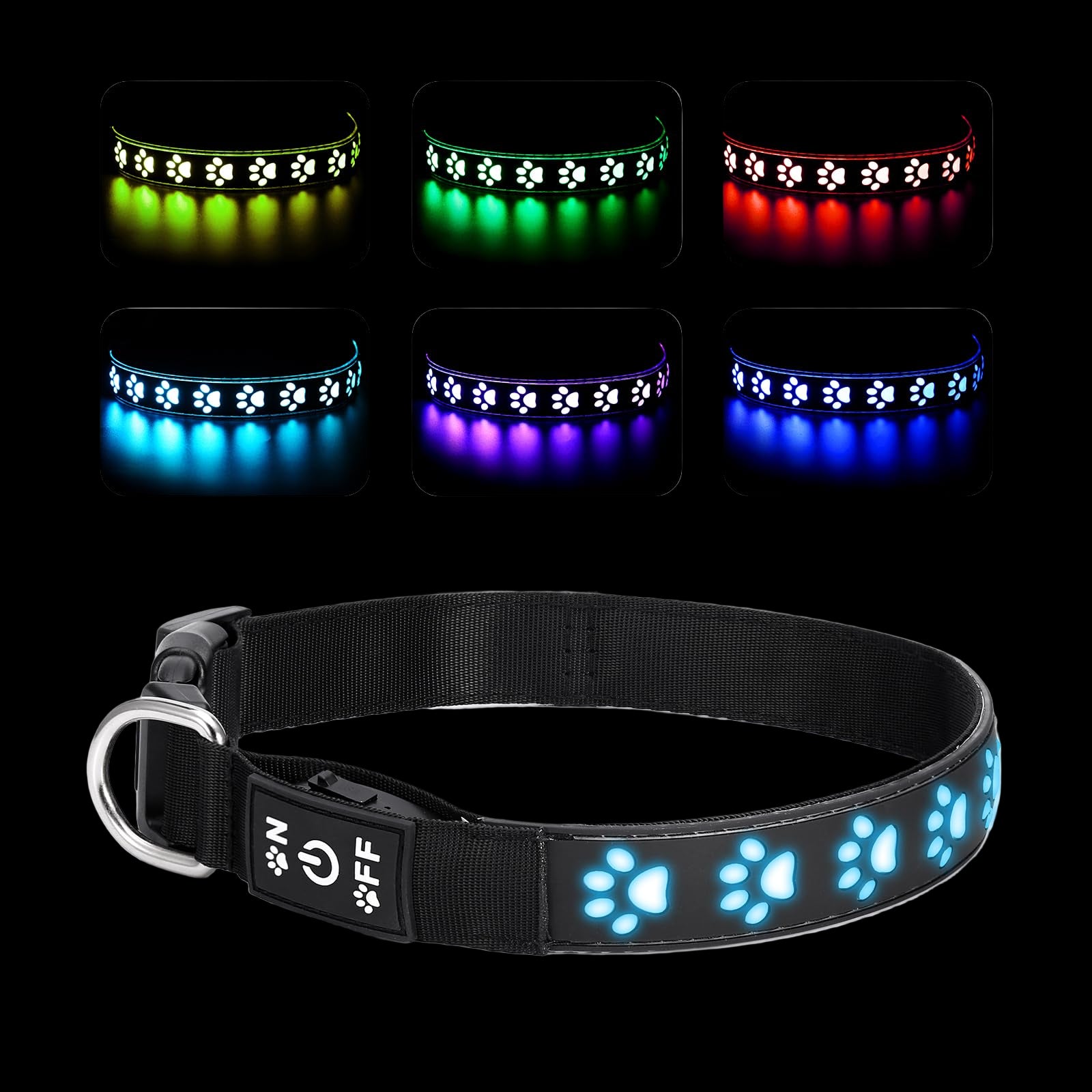 Keep your furry friend safe and stylish with the Paw Print Glow Collar!